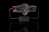 HYPNOS - 33x36 x 7 cms sand cast glass sculpture -copper inclusions -steel & stone.-