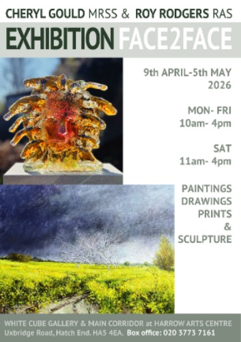 Joint exhibition Cheryl Gould MRSS Face2Face with Roy Rodgers RAS ~ sculpures,drawings & prints at The White Cube Gallery & Main Corridor at Harrow Arts Centre ~HA5 4EA