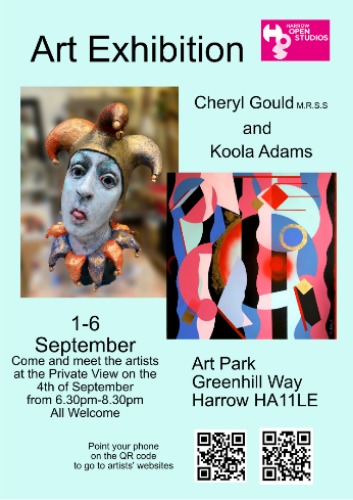 Joint exhibition Cheryl Gould Face2Face with Roy Rodgers~ sculpures,drawings & prints at The White Cube Gallery at Harrow Arts Centre ~HA5 4EA